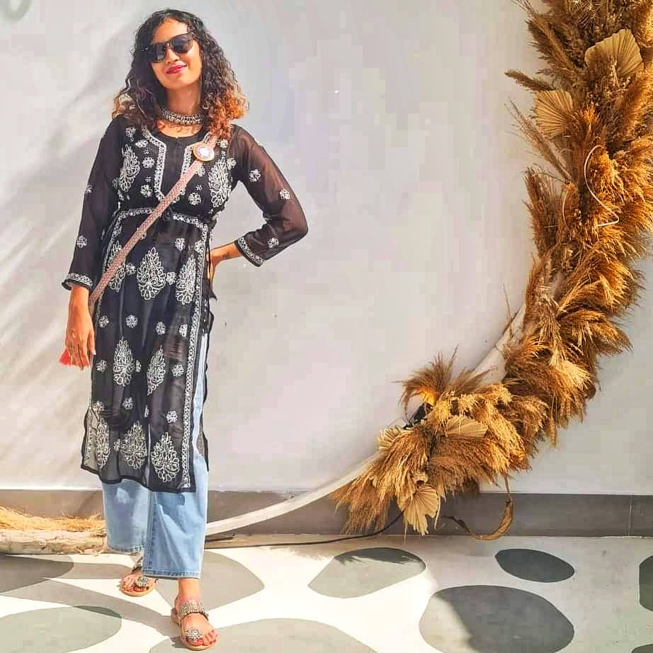 Mirror work nyra cut chikan kurti